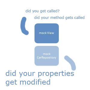 The aim here is to test if the Presenter doing the right interactivity with its dependencies. In our case here, the carRepository.FindAll() is called, and the result is being passed to the view. If the 2 asserts on the dependencies passed, then we have successfully test the Presenter.